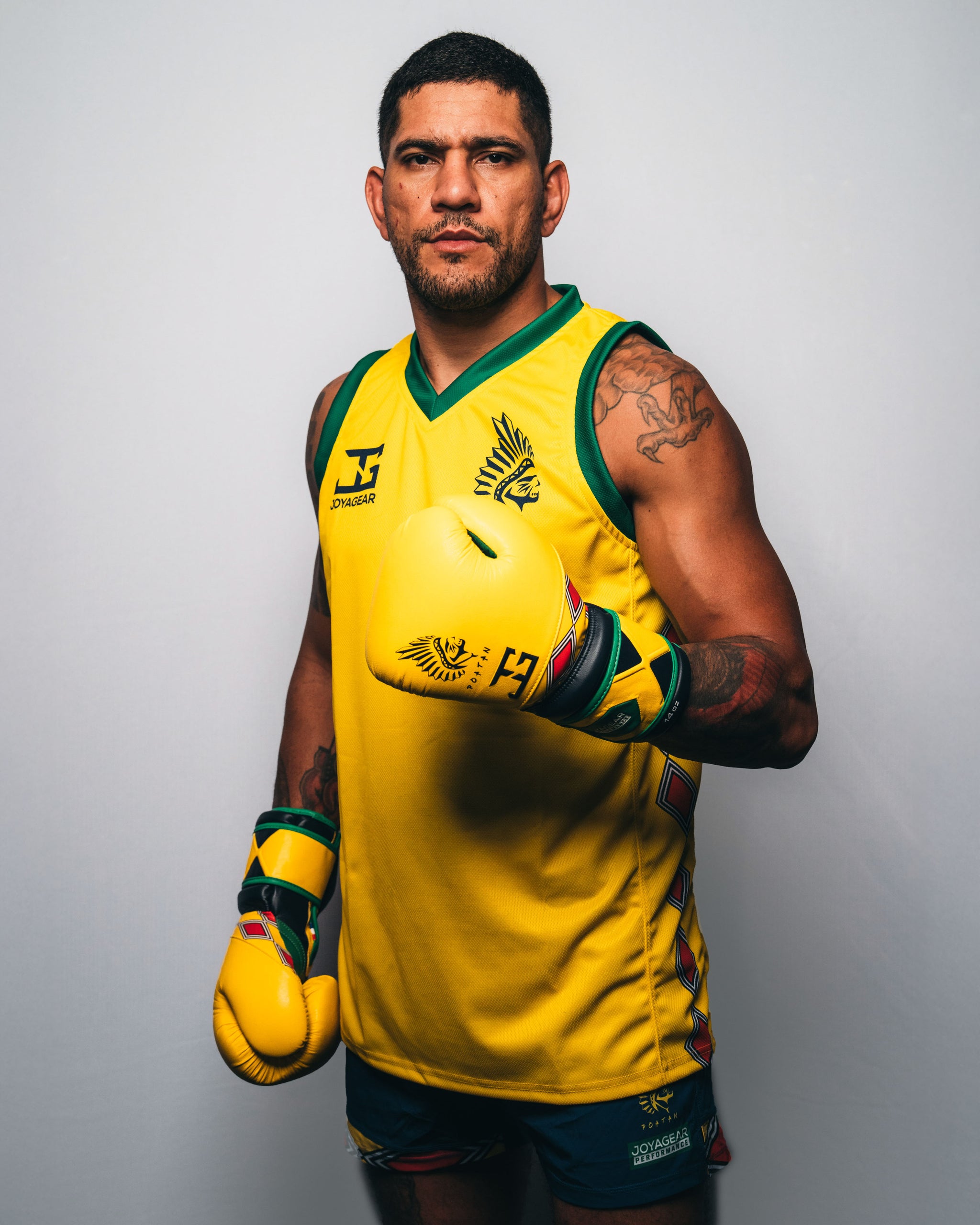 Die Joyagear X Poatan Performance Tribal Boxhandschuhe wurden in Zusammenarbeit mit UFC-Champion Alex „Poatan“ Pereira entwickelt. Diese Handschuhe vereinen traditionelle Kraft mit moderner Performance. Das Modell basiert auf dem neuen Performance V2, das jetzt eine tiefere Passform und weichere Polsterung für eine natürlichere Faustformung bietet. Die fünflagige Schaumstoffpolsterung sorgt für optimalen Schutz bei jedem Aufprall, während das äußerst strapazierfähige Mikrofaser-PU auch bei intensivem Training eine lange Lebensdauer garantiert. Das integrierte Klettverschlusssystem sorgt für einen festen Sitz, und die Flexibilität macht diesen Handschuh auch für das Clinchen geeignet. Geprägte Logos und eine hochwertige Verarbeitung runden das Gesamtbild ab.